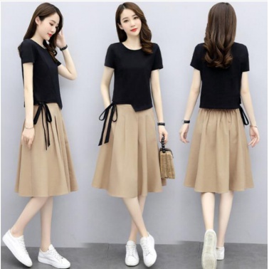 • 商品名称:妍莉芬 棉麻连衣裙新品女装套装2022年夏装新款韩版显瘦洋气休闲两件套套装裙中长款夏天裙子 黑+卡其 L